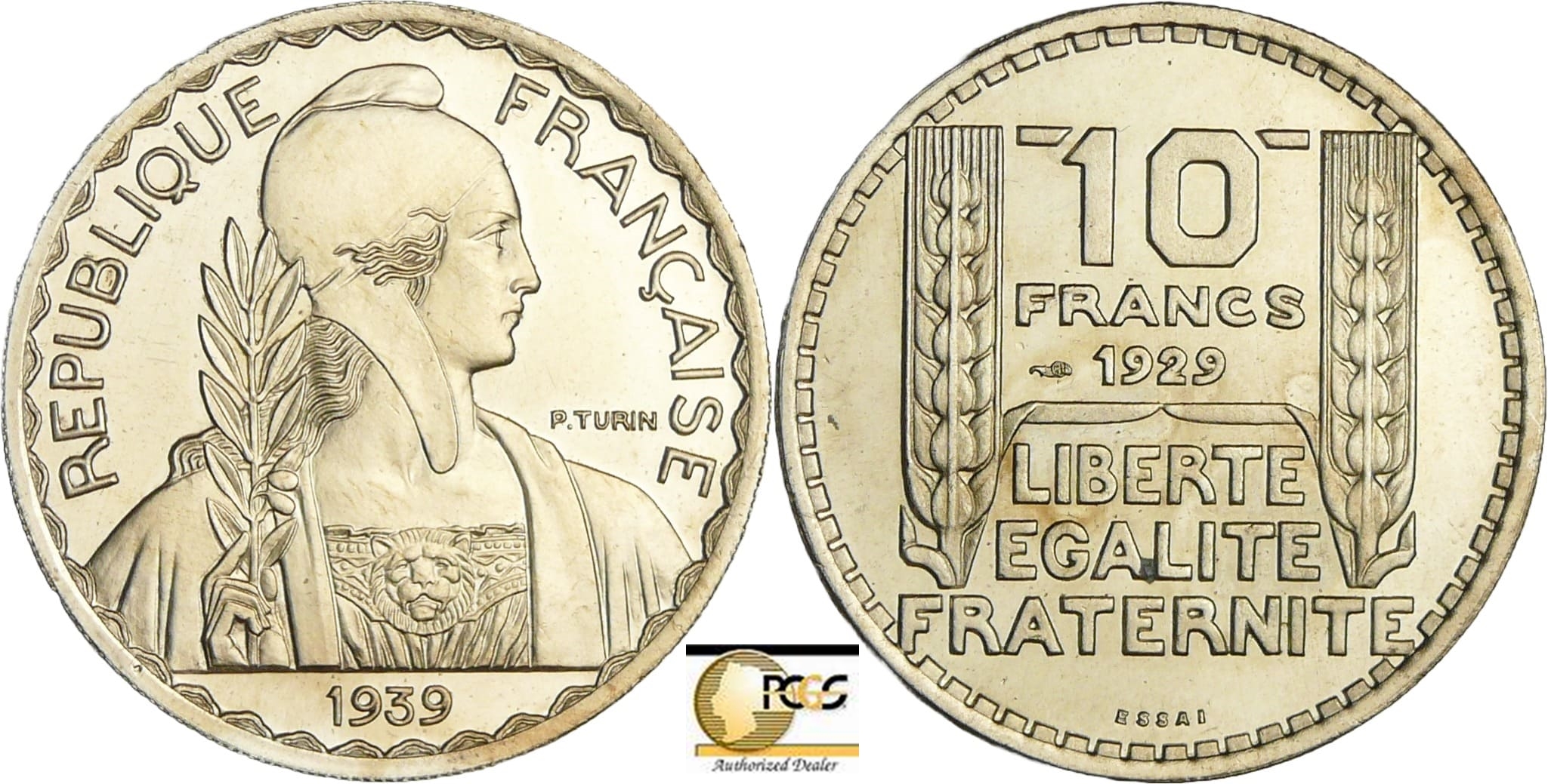France – Troisième république (1871-1940) – Essai 10 francs concours de Turin hybride 1929/1939 module 30 mm