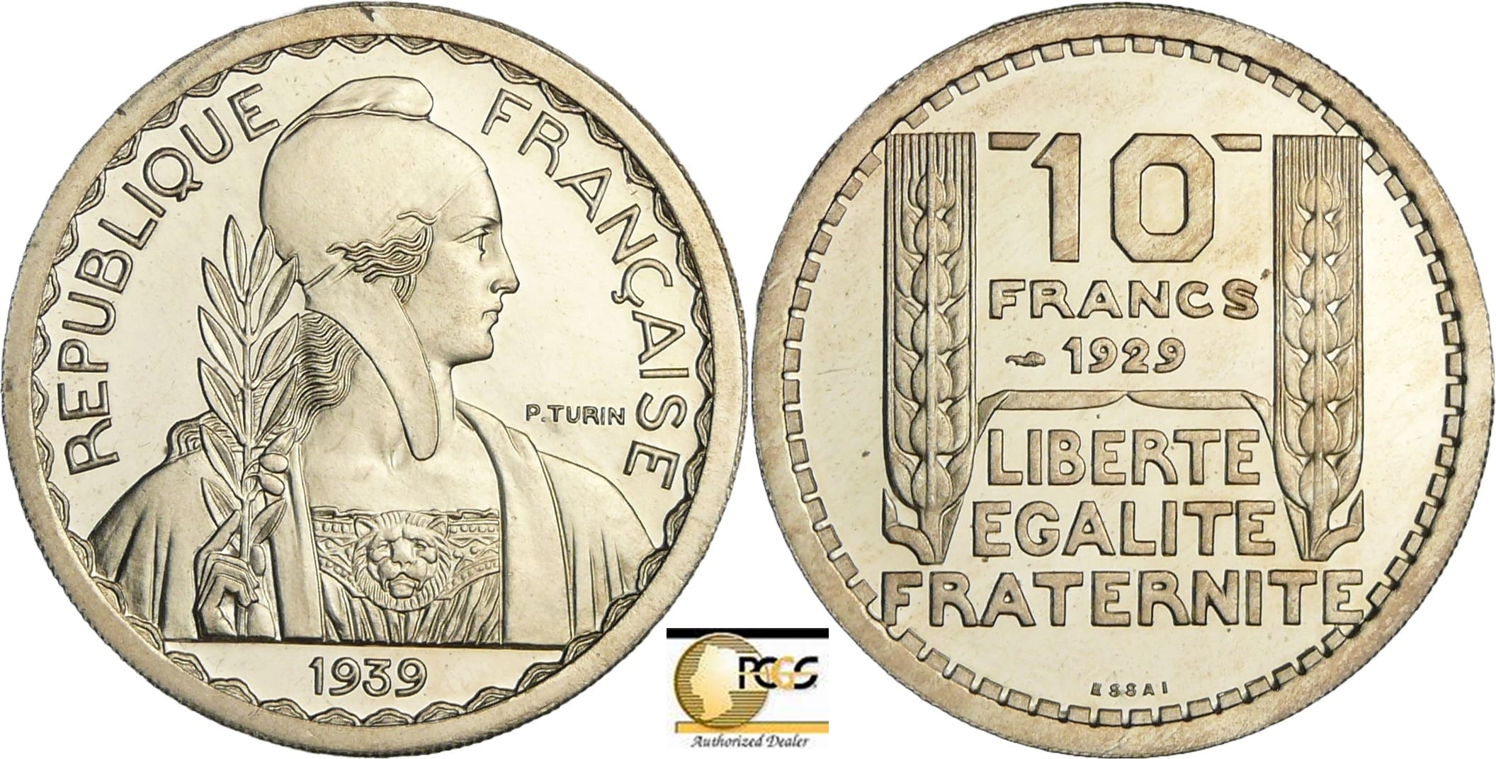 / France – Troisième république (1871-1940) – Essai 10 francs concours de Turin hybride 1929/1939 module 31 mm