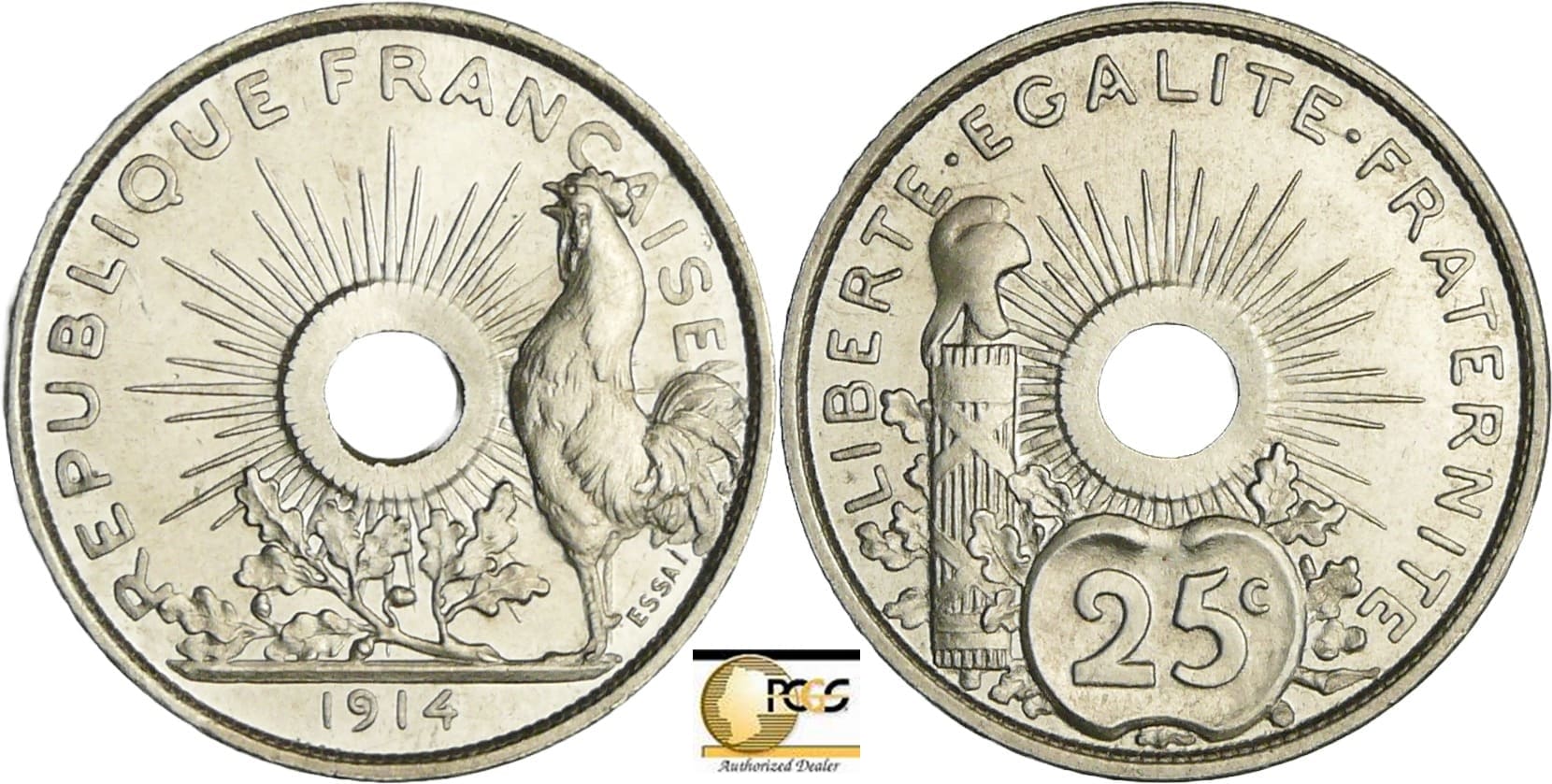 France – Troisième république (1871-1940) – Essai 25 centimes concours de Pillet 4ème type 1914