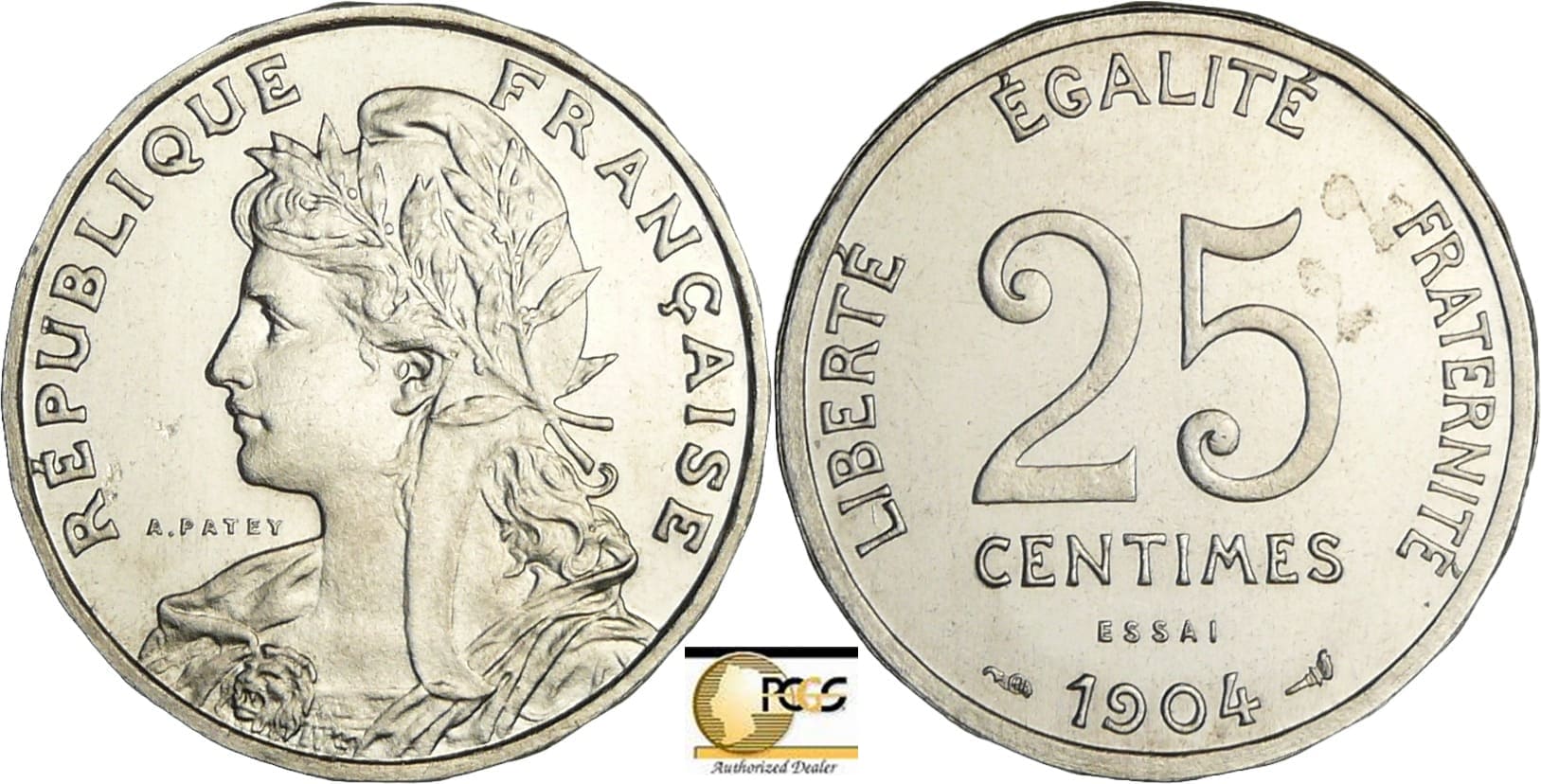 France – Troisième république (1871-1940) – Essai 25 centimes type Patey, 1er type sans le carré 1904