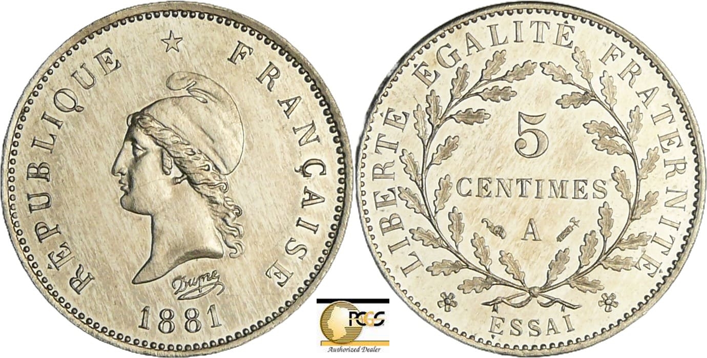 / France – Troisième république (1871-1940) – Essai 5 centimes 1881 A (Paris) flan rond