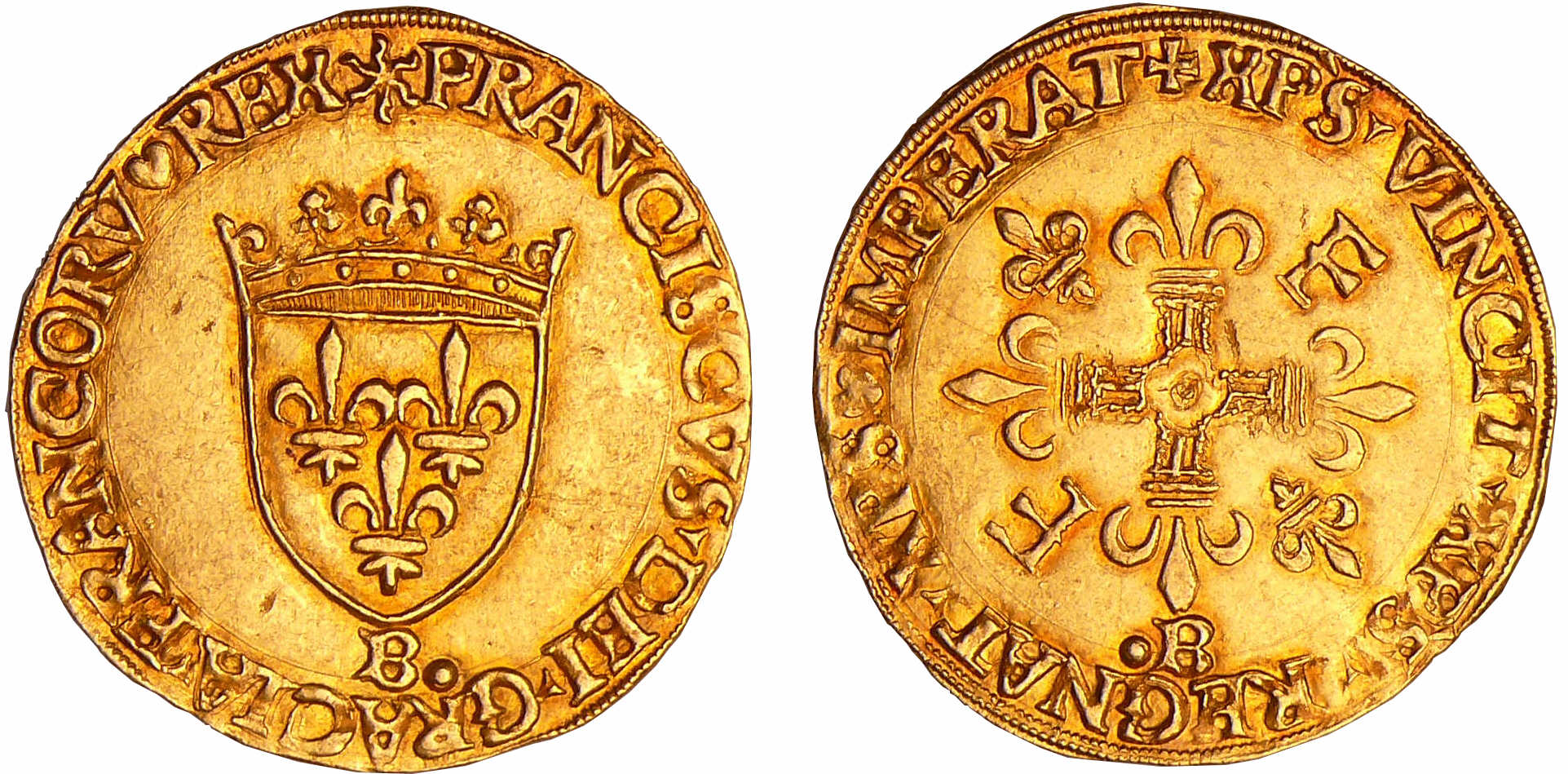 Avers : A/ FRANCISCVS DEI GRA FRNCORV REX Ecu de France couronné sous un soleil.