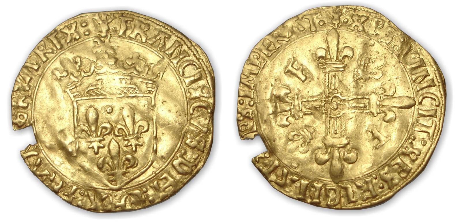 Avers : A/ (Mm). FRANCISCVS: DEI: GRA: FRANCORVM. REX.. Écu de FRANCE couronné sous un soleil.