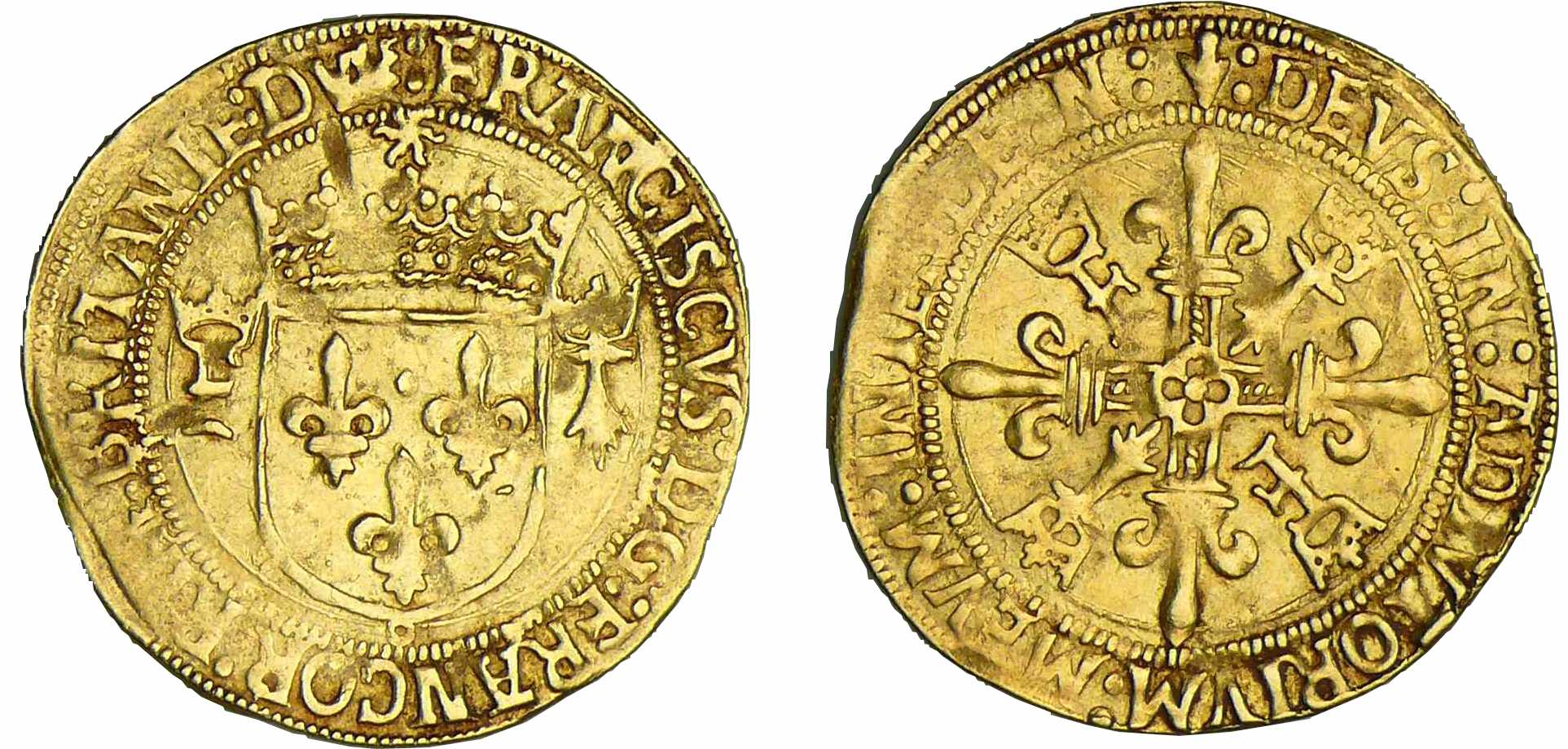 Avers : A/ FRANCISCVS: D: G: FRANCOR: REX: BRITANIE: DVX. Ecu de France couronné sous un soleil, accosté d’un F couronné et d’une moucheture d’hermine couronnée.