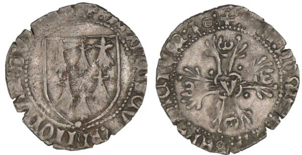 Avers : A/ + :FRAn6IS6VS: BRITonVm: DVX: Ç~: – Ecu triangulaire à six mouchetures.