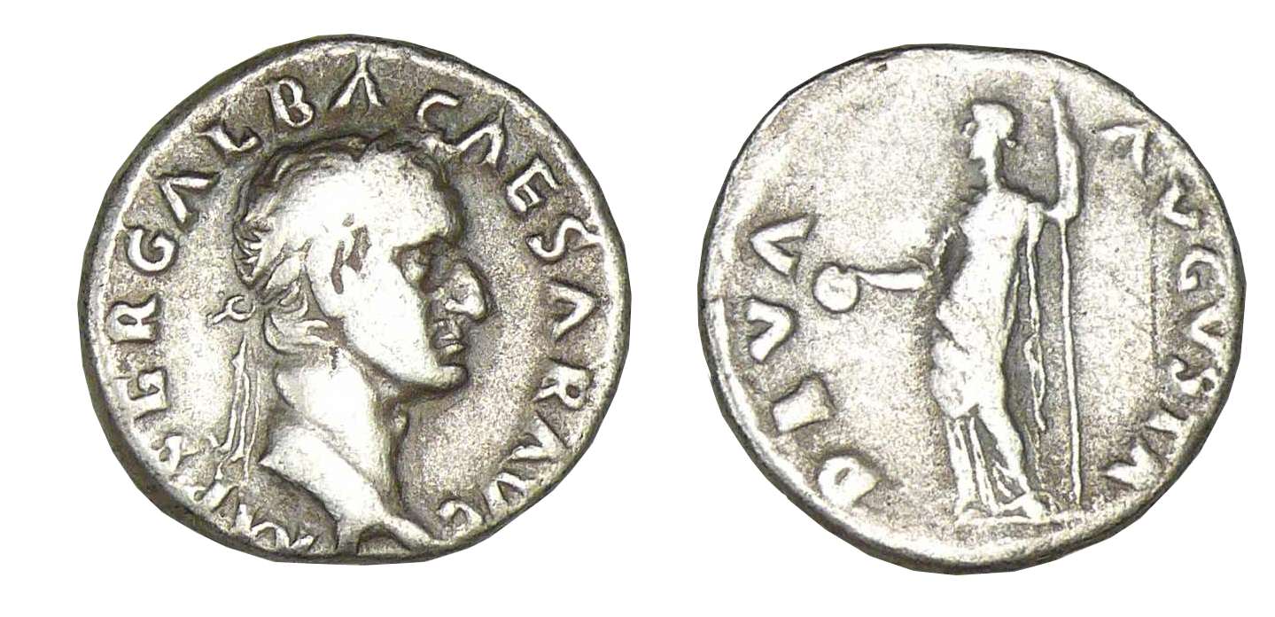 Avers : A/ IMP SER GALBA CAES AVG. Buste lauré à droite.