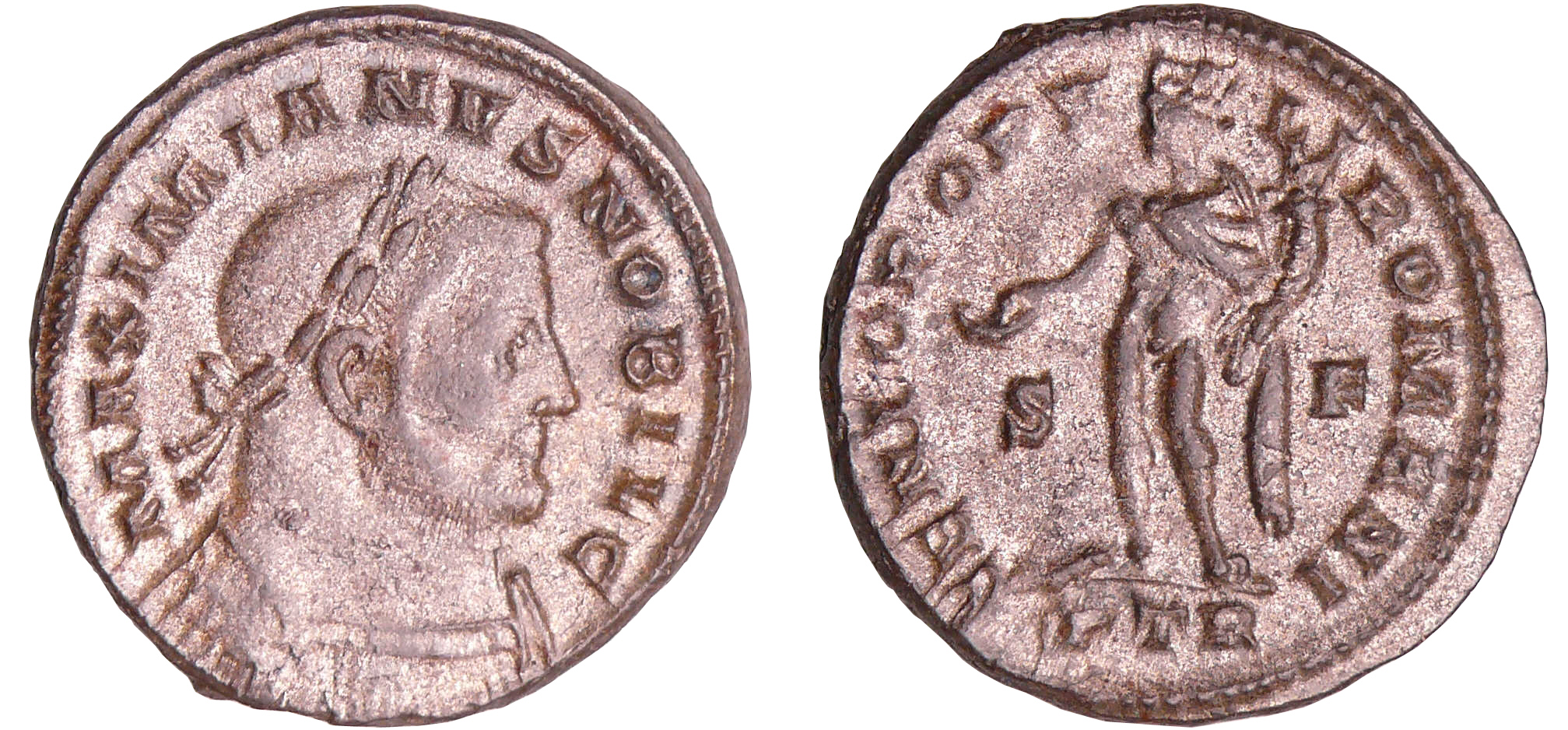 A/ MAXIMIANVS NOBIL C. Buste lauré, drapé et cuirassé à droite.