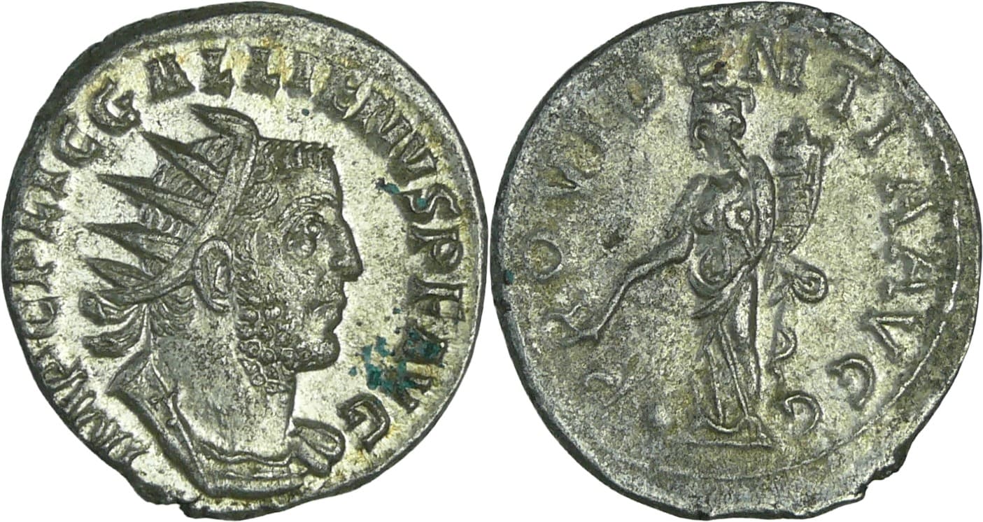 A/ IMP C P LIC GALLIENVS P F AVG. Buste radié et drapé à droite.