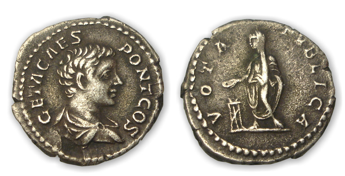 / Geta – Denier (205, Rome) Geta sacrifiant