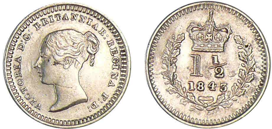 Grande-Bretagne – Victoria – Tree-halfpence 1843