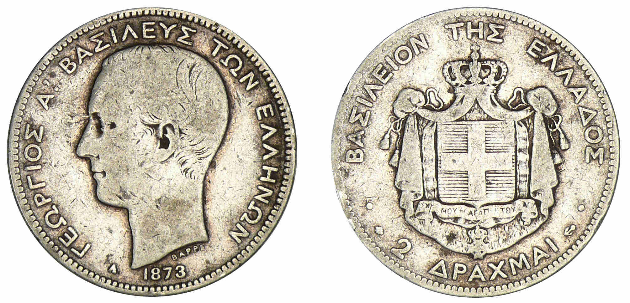 Grèce – George I – 2 drachmes 1873 A (Paris)