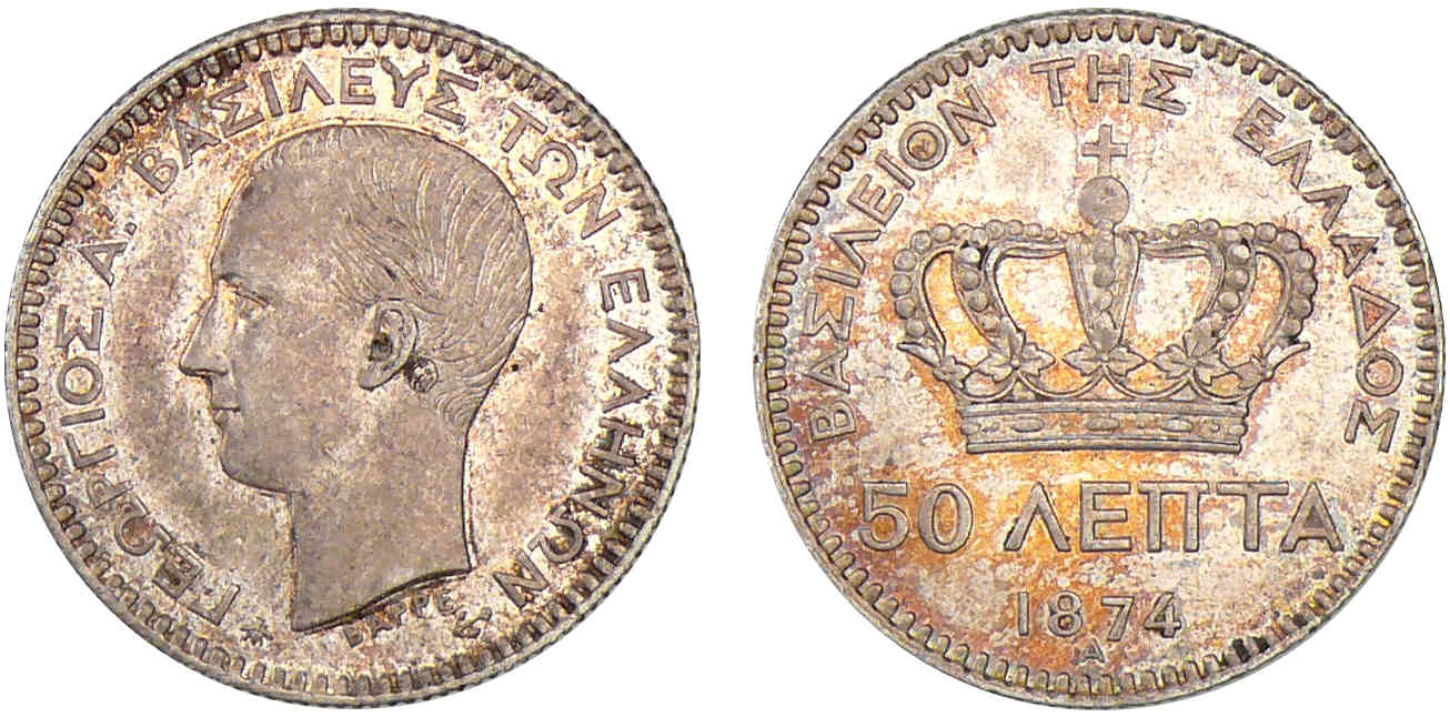 Grèce – Georges 1er – 50 lepta 1874 A (Paris)