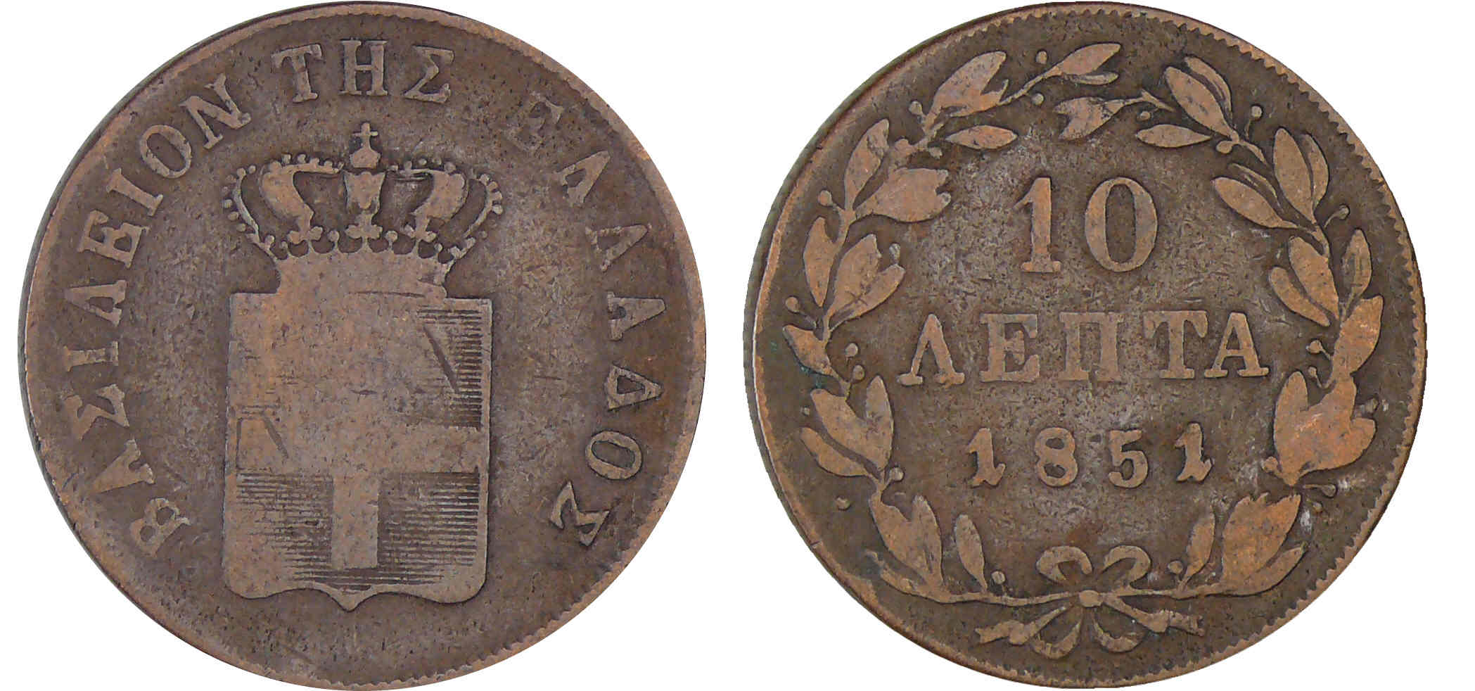 / Grèce – Othon de Bavière – 10 lepta 1851