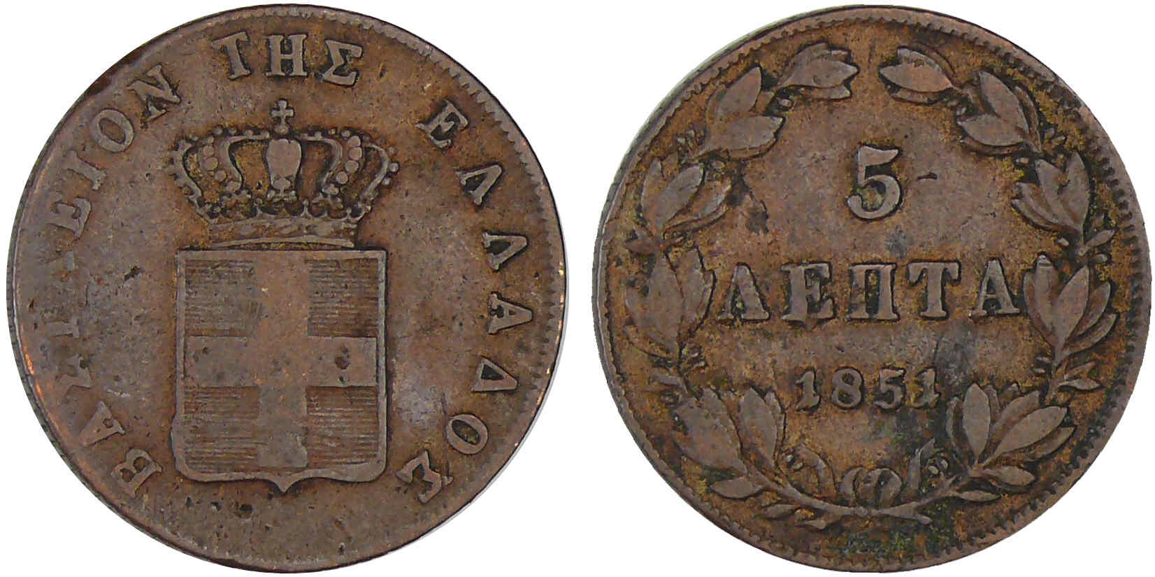/ Grèce – Othon de Bavière – 5 lepta 1851