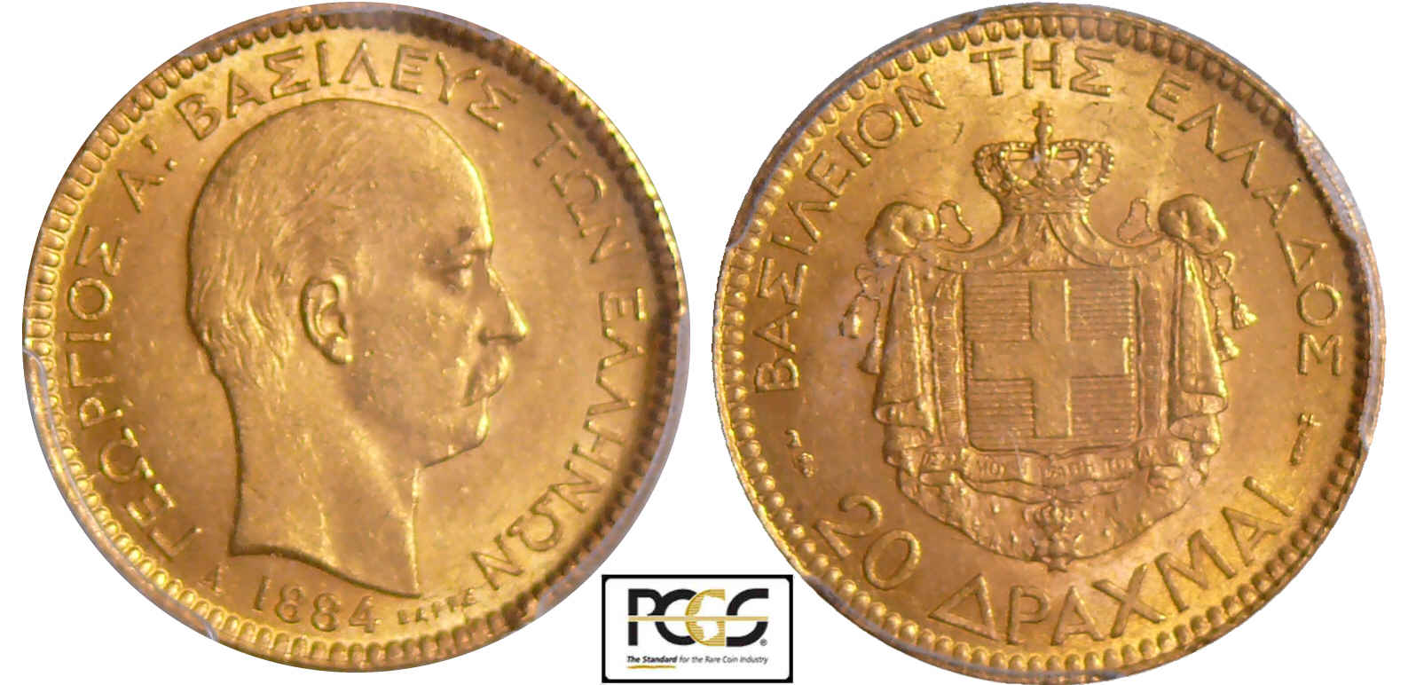 Grèce – Othon de Bavière – George Ier – 20 drachmes 1884 A (Paris)