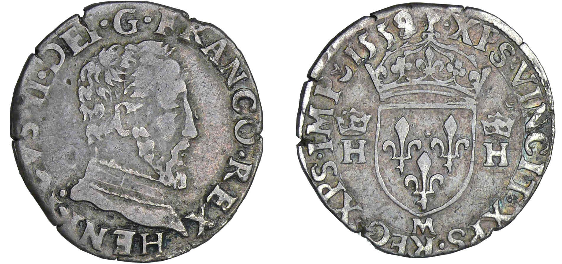 / Henri II (1547-1559) – Demi-teston – 5ème type – 1559 M (Toulouse)
