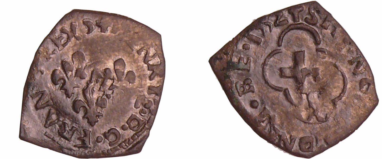 Avers : A/ + HENRI 2 D G FRAN REX. Trois lis posés aux 2ème et 1er dans un trilobe.