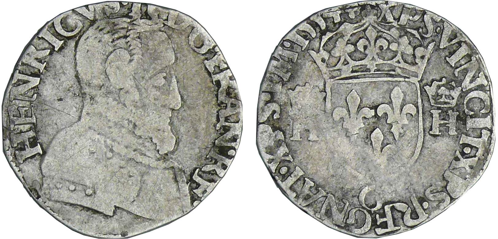 R/ + XPS. VINCIT. XPS. REGNAT. XPS. IMP. Ecu de France couronné et accosté de H couronnés. Lettre d’atelier sous l’écu.