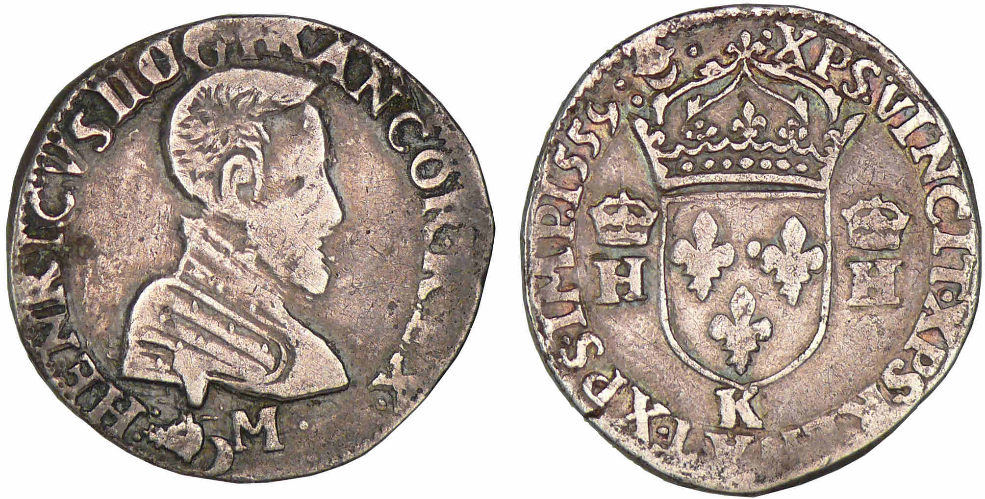 Avers : A/ + HENRICVS. II. D. G. FRANC. REX. Buste lauré à droite.