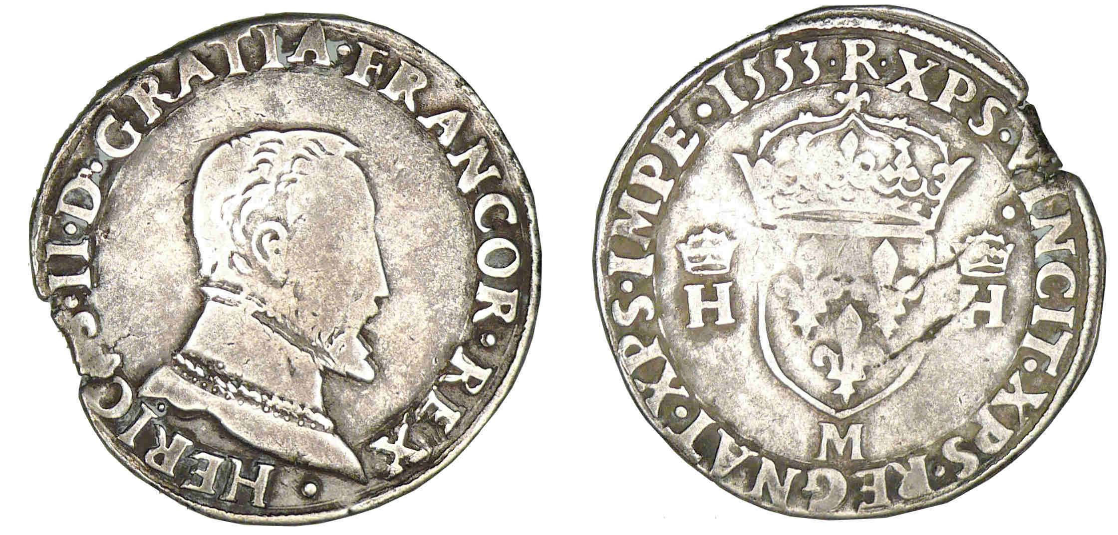 R/ + XPS. VINCIT. XPS. REGNAT. XPS. IMPE. (millésime). Ecu de France couronné et accosté de H couronné. Lettre d’atelier sous l’écu.