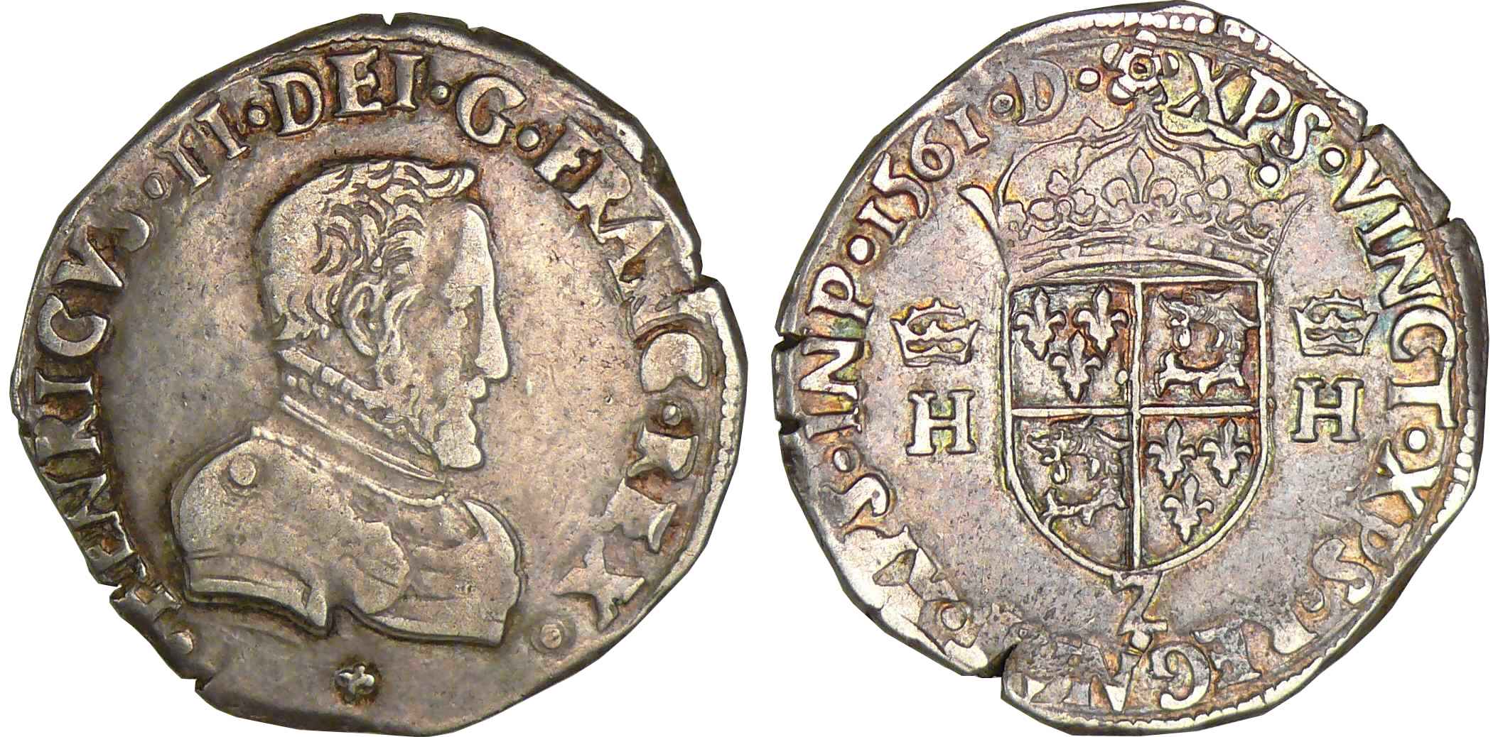 Avers : A/ HENRICVS. II. DEI. G. FRANCOR. REX. Buste du roi lauré à droite.