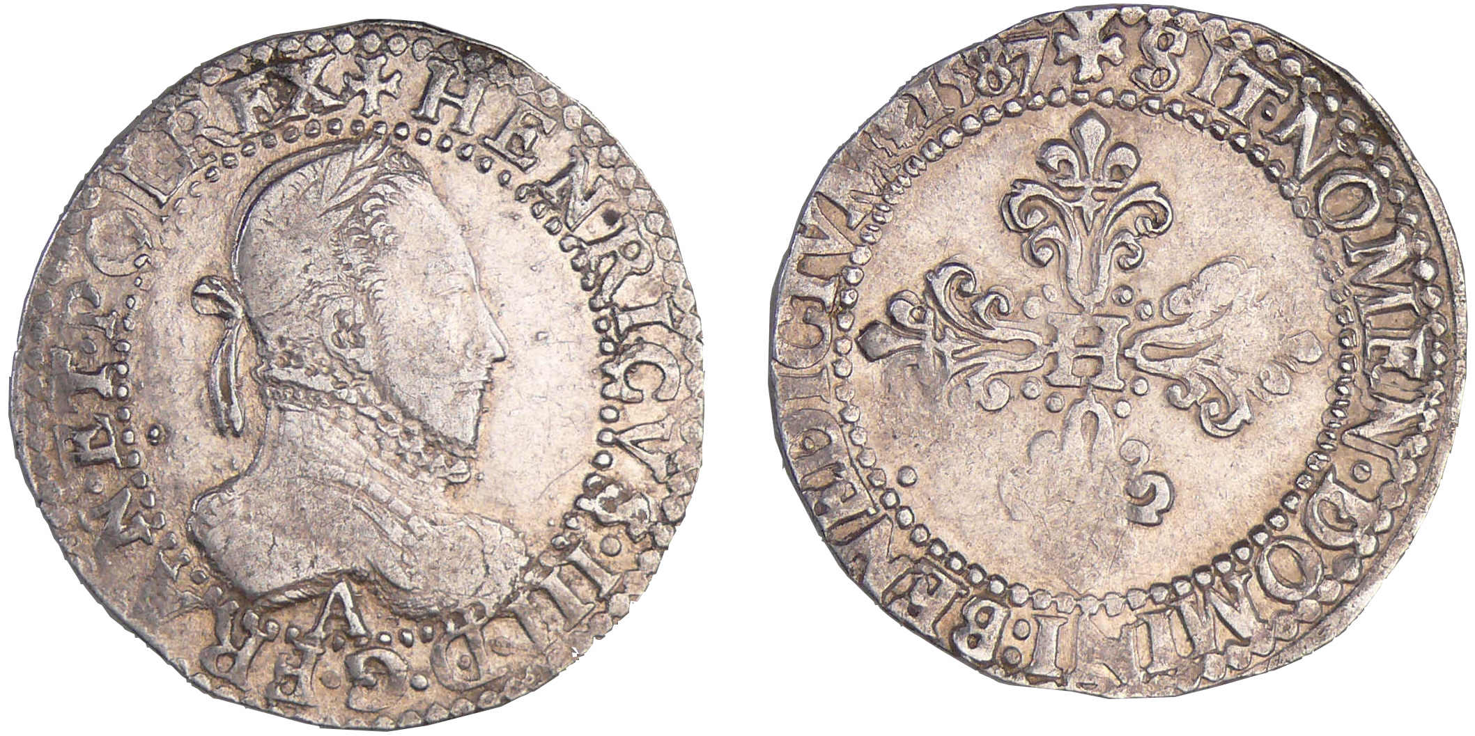 / Henri III (1574-1589) – Demi-franc au col gauffré – 1587 A (Paris)