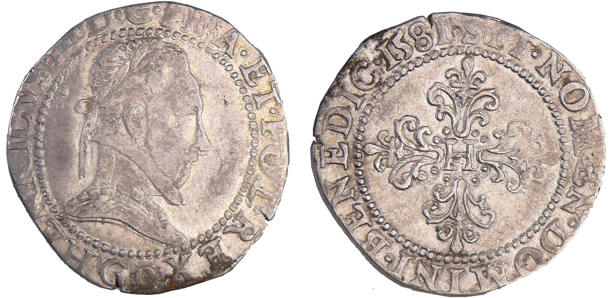 / Henri III (1574-1589) – Demi-franc au col plat – 1581 G (Poitiers)