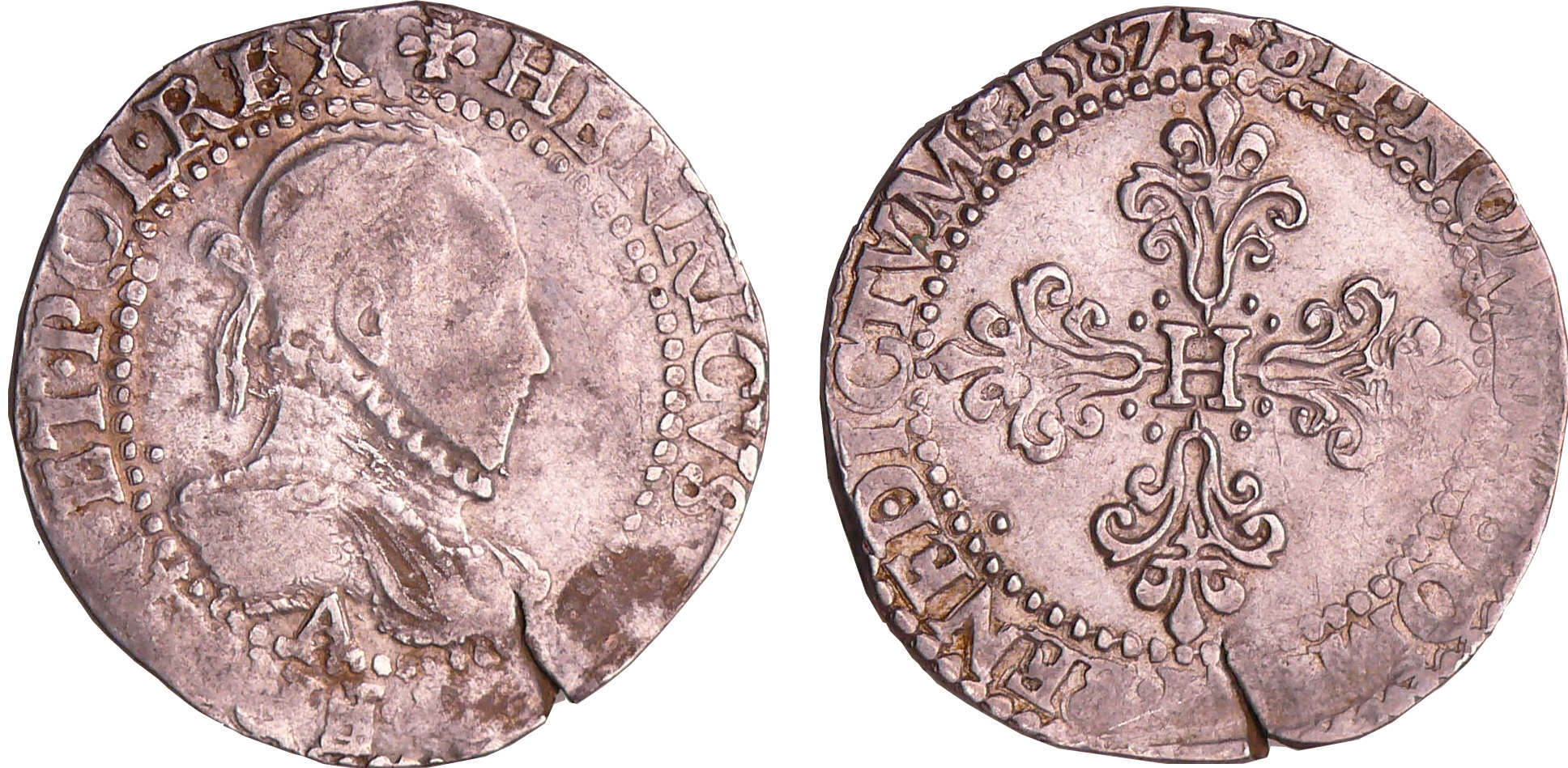 Henri III (1574-1589) – Demi-franc au col plat – 1587 A (Paris)