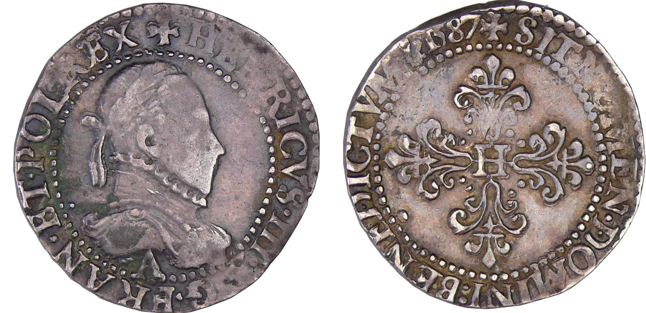 / Henri III (1574-1589) – Demi-franc au col plat – 1587 A (Paris)