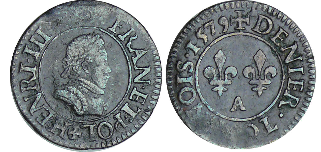 / Henri III (1574-1589) – Denier tournois – 1579 A (Paris)