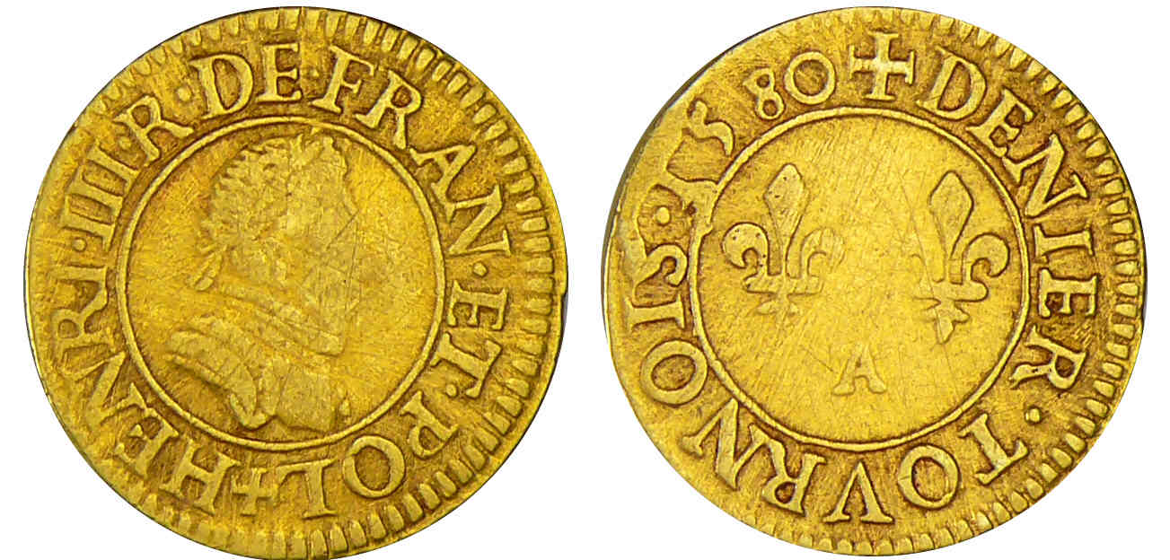 / Henri III (1574-1589) – Denier tournois – 1580 A (Paris) – Denier à épousé