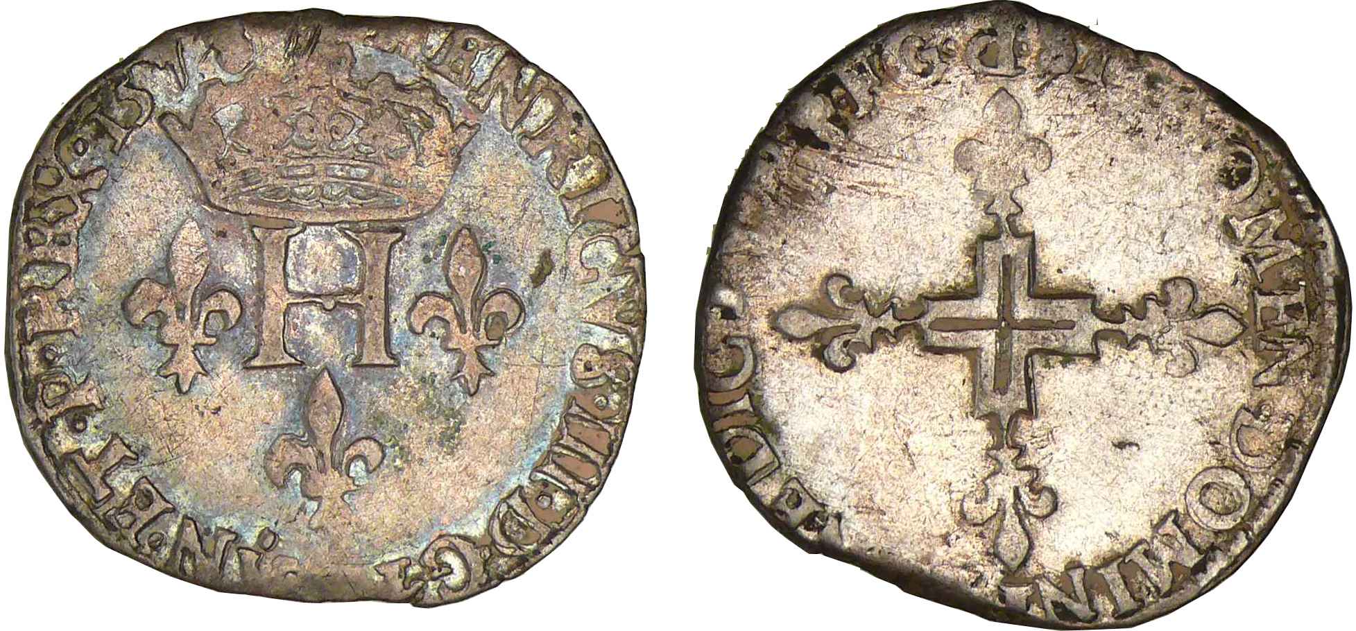 A/ HENRICVS III D G FRAN ET P REX. H couronné entre trois lis.