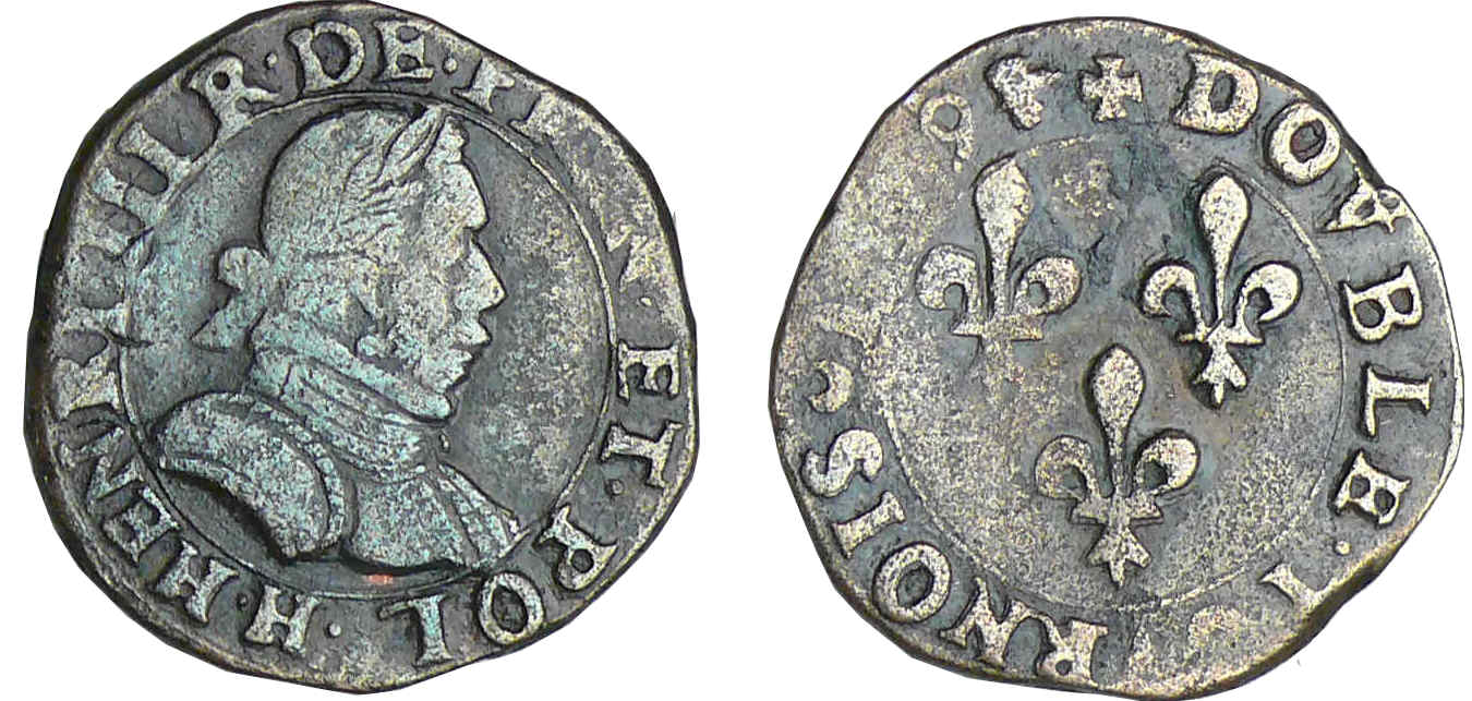/ Henri III (1574-1589) – Double tournois – 1579 H (La Rochelle)