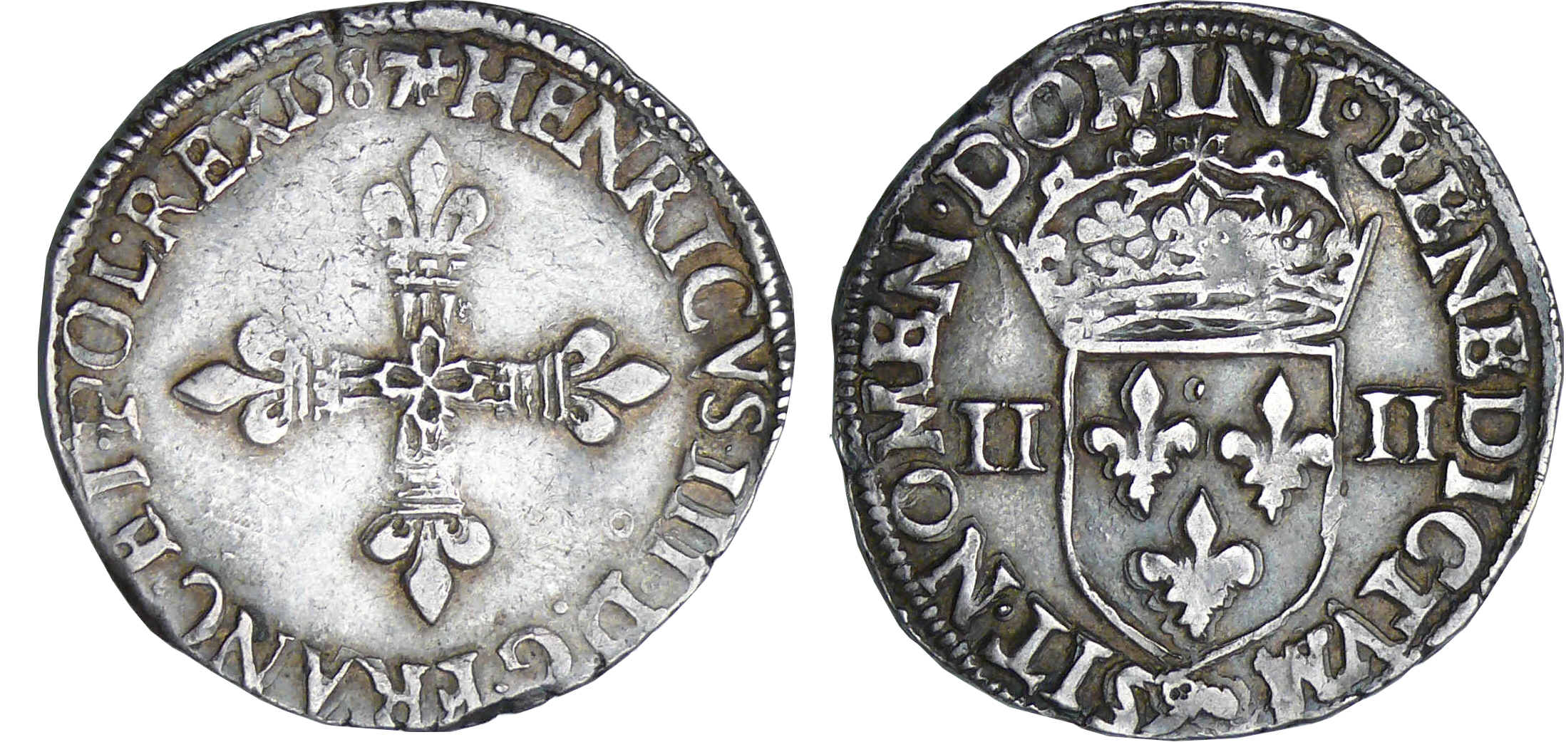 A/ + HENRICVS III D G FRANC ET POL REX. Croix fleurdelisée.