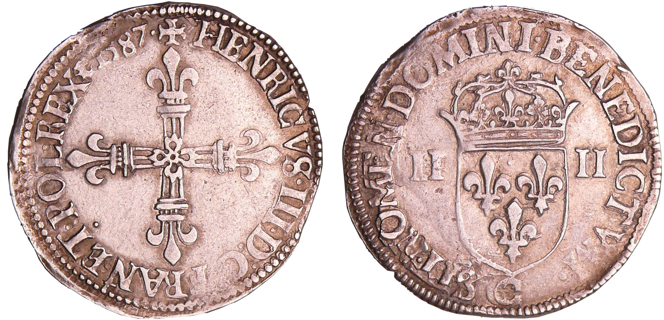 / Henri III (1574-1589) – Quart d’écu – 1587 C (Saint-Lô)