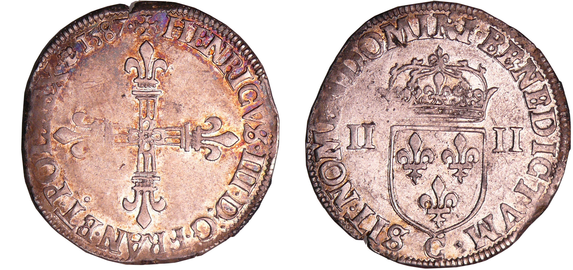 / Henri III (1574-1589) – Quart d’écu – 1587 C (Saint-Lô)