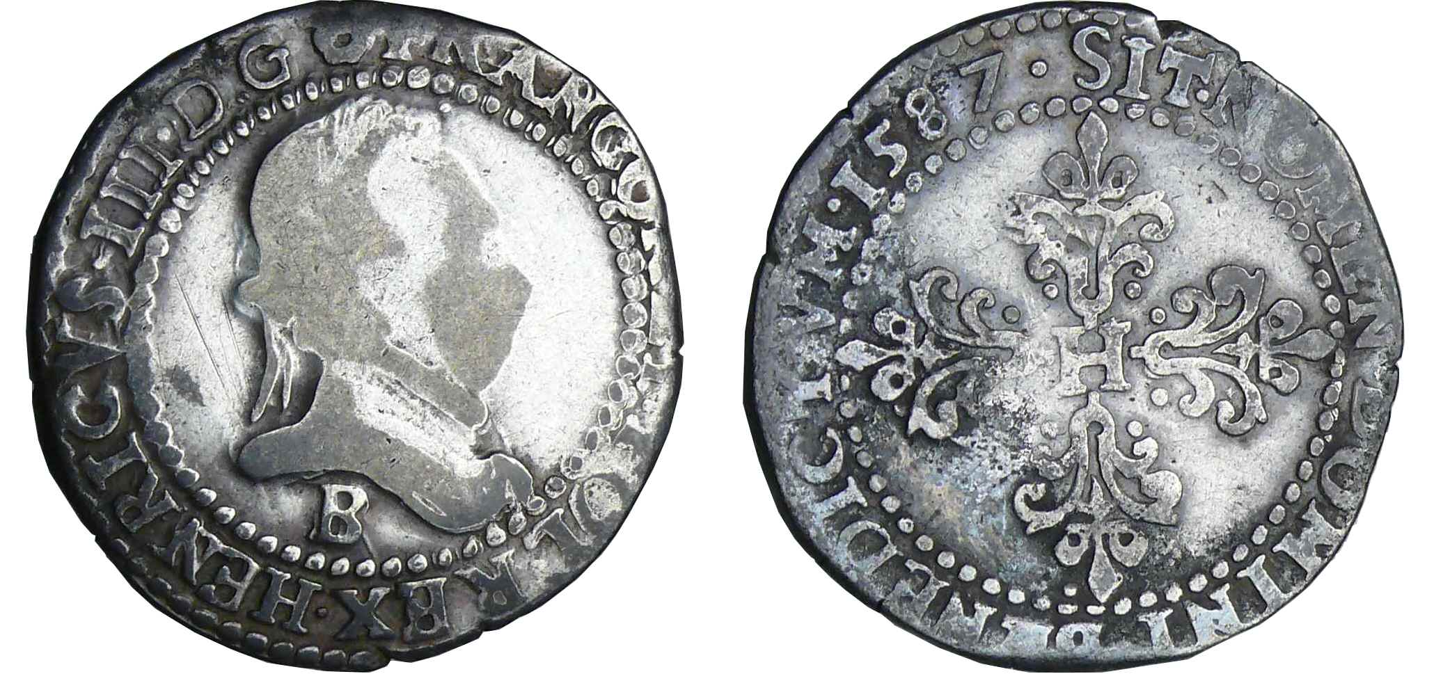 Henri III – Demi-franc au col plat – 1587 B (Rouen)