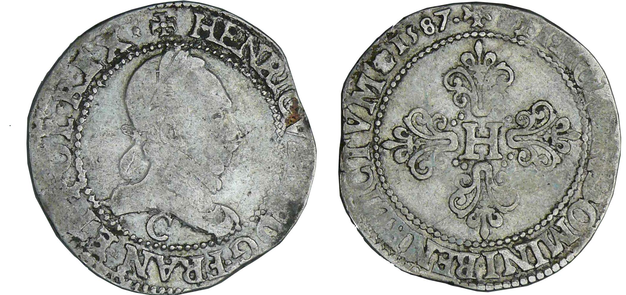Henri III – Demi-franc au col plat – 1587 C (Saint-Lô)