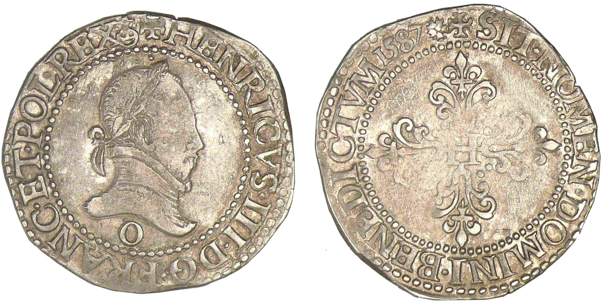 Henri III – Demi-franc au col plat 1587 O (Riom).
