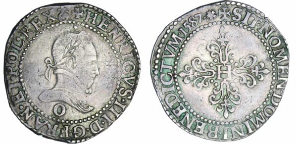 Henri III – Demi-franc au col plat – 1587 O (Riom)