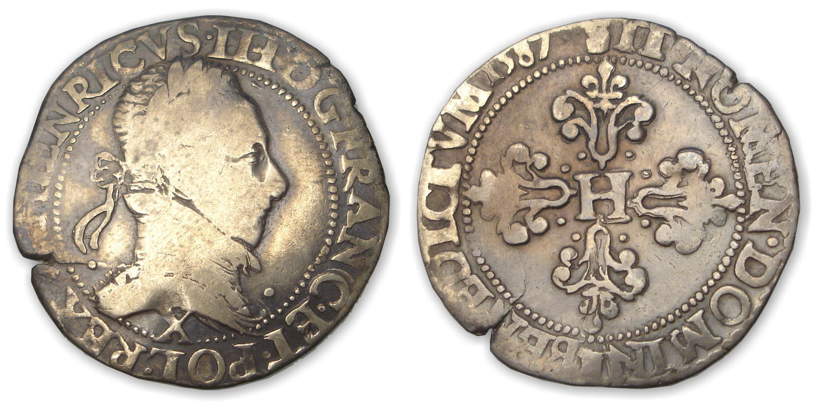 Henri III – Demi-Franc au col plat 1587 X (Amiens)