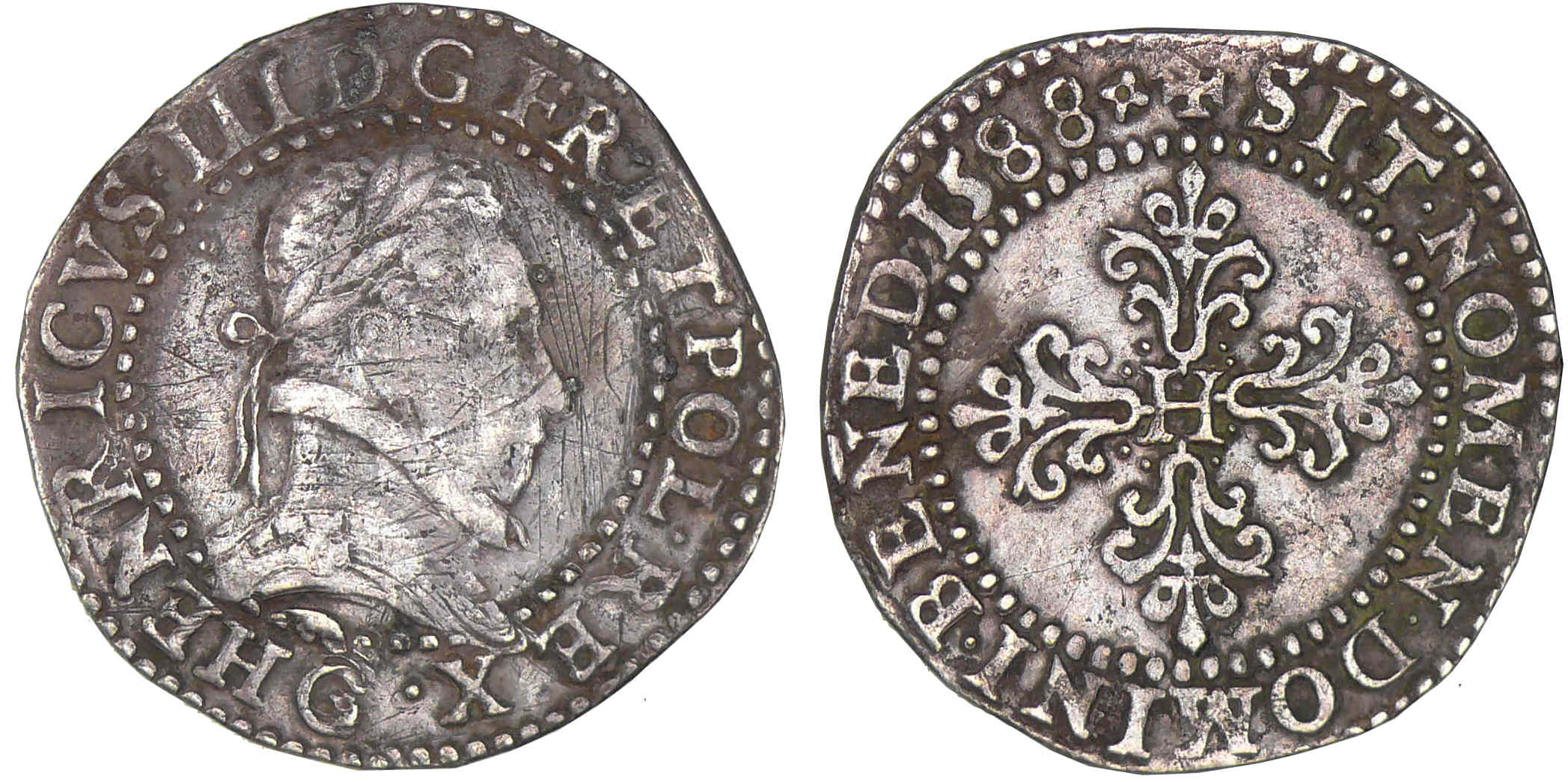 Henri III – Demi-franc au col plat – 1588 G (Poitiers)