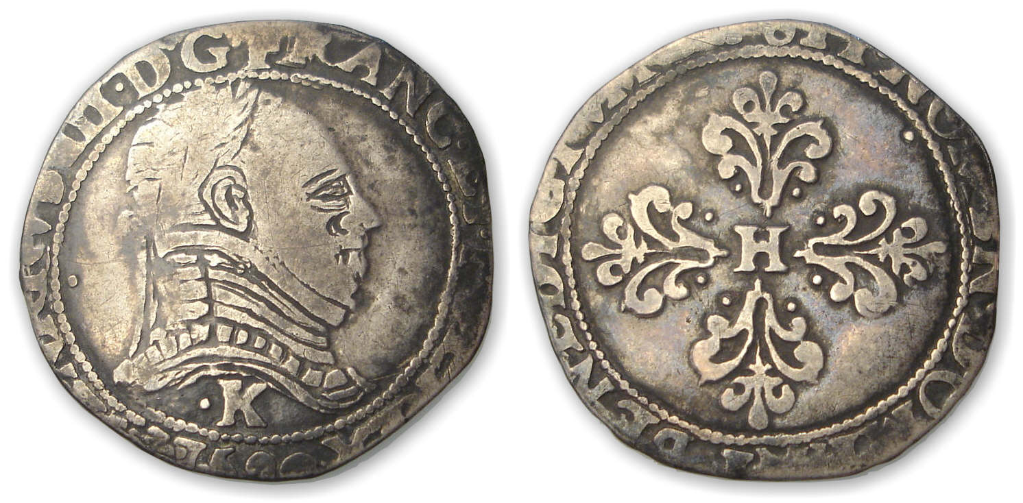 Avers : A/ [+ HE]NRICVS. III. D. G. FRANC. ET. POL. REX 1590. Buste lauré et cuirassé à droite, au col plat. Lettre d’atelier sous le buste.