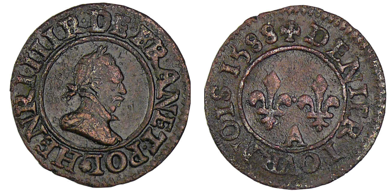 Henri III – Denier tournois – 1588 A (Paris)
