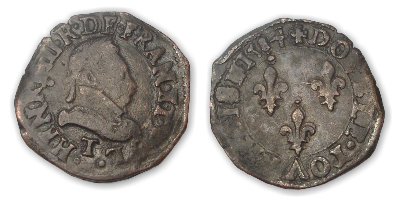 R/ + DOVBLE. TOVRNOIS 1584. Trois lis posés 2 et 1