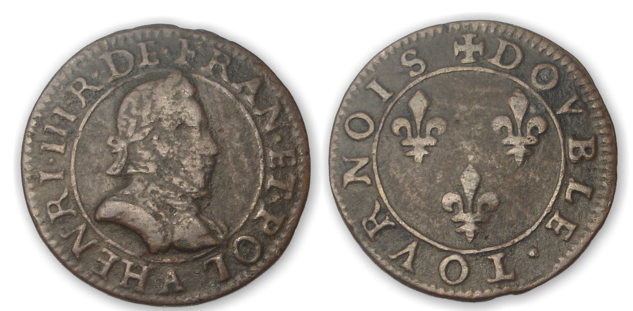 R/ + DOVBLE. TOVRNOIS. Trois lis posés 2 et 1