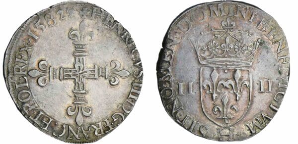 Avers : A/ + HENRICVS. III. D. G FRANC. ET. POL. REX 1582. Croix fleurdelisée.