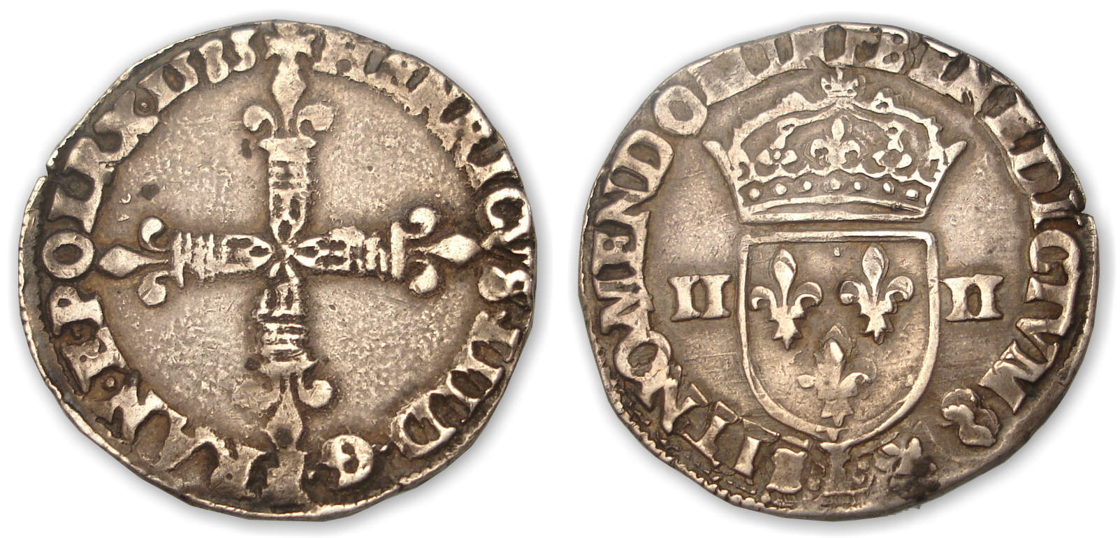 Avers : A/ + HENRICVS. III. D. G FRAN. ET. POL. RX 1583. Croix fleurdelisée.