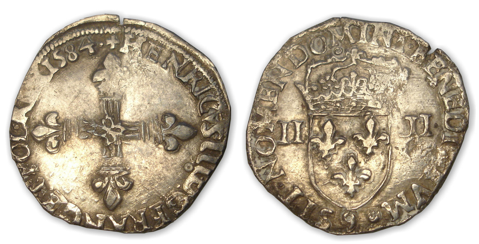 Avers : A/ + HENRICVS. III. D. G FRANC. ET. POL. REX 1584. Croix fleurdelisée.