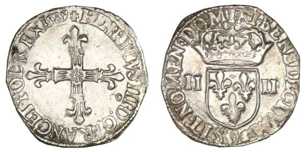 / Henri III – Quart d’écu 1589 9 (Rennes)
